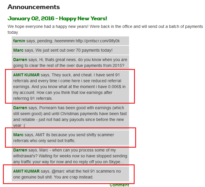 The admin of PornEarn is creating my false image in other members eyes. He deleted my specific comments and said i have 5 accounts. Its rubbish! Neither reply to mails nor comments. Just making my image down. I would strongly recommend to stay away from these scammers. Not only scammers they are CHEAP too. You can read my other complete article about them on digital point forums. Below is the link of that article.